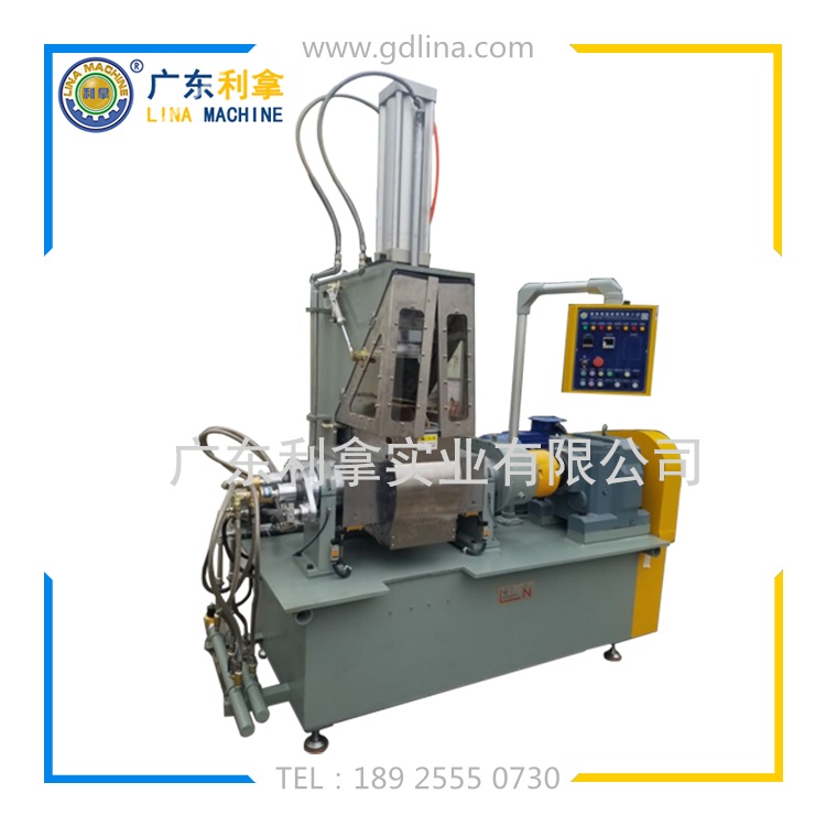 利拿牌5L密煉機核心技術來自臺灣,進口配件,防漏粉、分散性能卓越,全自動溫度及時間控制系統,操作精準、簡單容易,混合槽為可傾倒式,攪拌軸防漏采用干式機械軸封使清洗換色簡便容易,加壓密封式混合槽除可確保混合物品質外并可防止環境污染,混合槽采用高級合金鋼制造,表面皆經耐磨鋼處理,表面電鍍硬鉻耐磨性特佳。